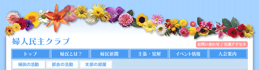 「婦人民主クラブは、敗戦まもない一九四六年三月十六日に創立されました。敗戦により戦争の真実を知った女性たちは婦人民主クラブに希望を託しました。それから六十年、日本はいくらかでも進歩したでしょうか。昨今の増税、社会保障の後退など、私たちの暮らしはますます困難になっています。