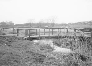 広々とした芝生の中央に入間川から分水した小川が流れ、素朴でしっかりした赤茶色の小さな欄干付き木橋が架かっていました。