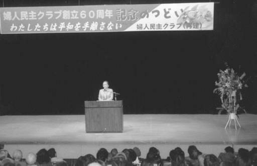 「婦人民主クラブは、敗戦まもない一九四六年三月十六日に創立されました。敗戦により戦争の真実を知った女性たちは婦人民主クラブに希望を託しました。それから六十年、日本はいくらかでも進歩したでしょうか。昨今の増税、社会保障の後退など、私たちの暮らしはますます困難になっています。