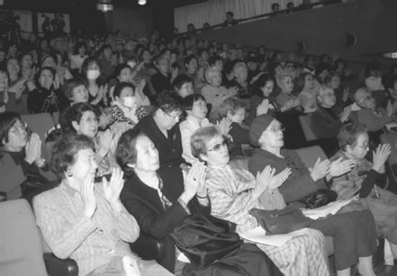 この日に向け新しく制作されたビデオ「婦人民主クラブの60年」の上映。前進座・西川かずこさん、今村文美さんの舞踊「民謡三題」は、舞台に春を呼ぶあでやかさで、会場から大きな拍手がおくられました。
