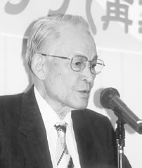 ついで来賓あいさつに立った畑田重夫さん(国際政治学者)は、「戦後のあらゆる闘いに立ち会ってきたが、いつもそこには婦民会員の姿があった」と語り、今年の年賀状の「日常生活すべてに憲法感覚が必要な時代になってきました」という女性からの一言をあげ、ねばり強く憲法改悪を許さない闘いをと呼びかけました。