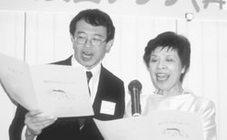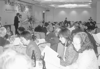 婦民創立六十周年の祝賀レセプションは、記念のつどいに引き続き、三月十九日夜、東京・吉祥寺の東急インで開かれ、百五十名近い方が出席されました。司会は平野節子さん(広島支部)と加集静子さん(埼玉支部)。