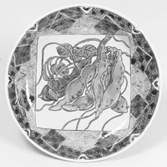 九谷色絵さつまいも図大鉢(海部公子作 径46・6p)