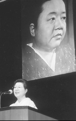 閉会のあいさつは婦民の一戸葉子会長が、六十周年を迎えた婦民と百合子のかかわりを紹介し、大きな拍手で閉会しました。