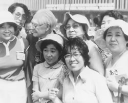 嘉屋重さんの家族は当時父母と八人きょうだいの十人、全員被爆しました。姉二人は被爆死し、父と兄は入市被爆者、戦後生まれた妹は被爆二世です。嘉屋重さんは婦民の代表として一九八八年、第三回国連軍縮特別総会に核兵器廃絶を要請に渡米したほか、個人的にもたびたびアメリカの大学などに招かれて被爆の実相を語りつづけています。