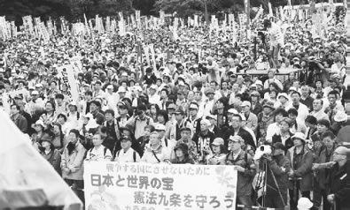 国民投票法案を通してしまったら、憲法「改正」への行程はすぐ目の前です。私たち自由法曹団では、一人でも多くの人々にこの法案の危険性を知らせるために「国民投票法反対読本」のリーフを作って広めています。連絡TEL03(3814)3971。