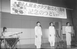婦人民主クラブ創立六十一周年記念のつどいが三月四日、東京・千代田区の東京しごとセンター講堂で開かれました。女声アンサンブルの「春を呼ぶうたごえ」と「婦人解放」の原点を考えさせる二宮厚美先生の講演は、「婦人民主クラブ」の名称を回復して初めての創立記念のつどいにふさわしい内容でした。