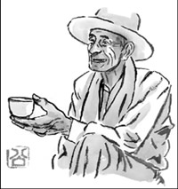 地元からは屋根に上るのが少し慣れてきたいつもの助っ人三人が古川親方の指示で動き、順調に一日目が終わった。二日目は終日かんかん照りの中で皆が汗を流した。古川さんも昼間の仕事中は元気いっぱいだった。しかし夕刻風呂を浴び、夕飯の食卓でコップ一杯のビールを飲んでまもなく失神した。びっくり、あわてて救急車にお出まし願うさわぎになり、近所の人がかけつけてきたりした。私がつき添って病院へ。だが点滴をはじめたら血圧も正常になり本人もケロリとして「以前にも畑でこうなったことがあった」と。古川さんは平素、三食に梅干は欠かさないが粗食で少食、水分もあまり摂らない。医師の診断は脱水と貧血だった。点滴を終え家に戻り、床についた。だが翌日からはもう屋根の上の人になって、休めば、といっても聞かず、体の方が動いてしまう。