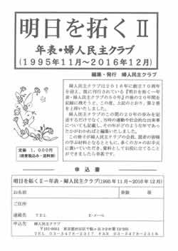 婦人民主クラブ創立からの50年の歩みを記録した「明日を拓く」に続く20年間の記録です。婦民新聞2019年2月20日号で紹介しました。