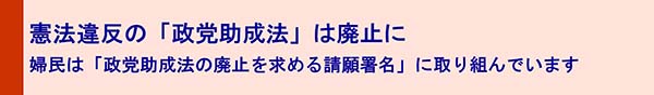 婦民は「政党交付金はおかしい。廃止の声を上げよう」と話し合い、「政党助成法の廃止を求める請願署名」を集会や街頭宣伝などでよびかけています。