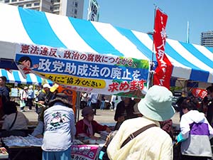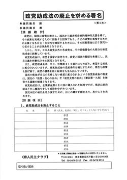 私たちは「政党助成法」は憲法の「思想・良心の自由を脅かし、政治の堕落につながる」ことを多くの人に知らせ、もっともっと署名を広げ世論をつくっていかなければなりません。