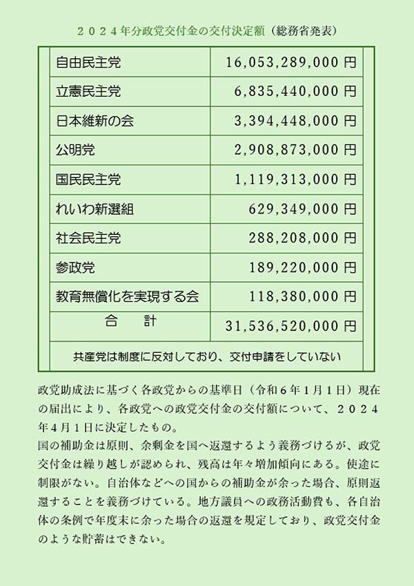 解決の道は、政党助成金制度そのものを廃止する以外にないのです。